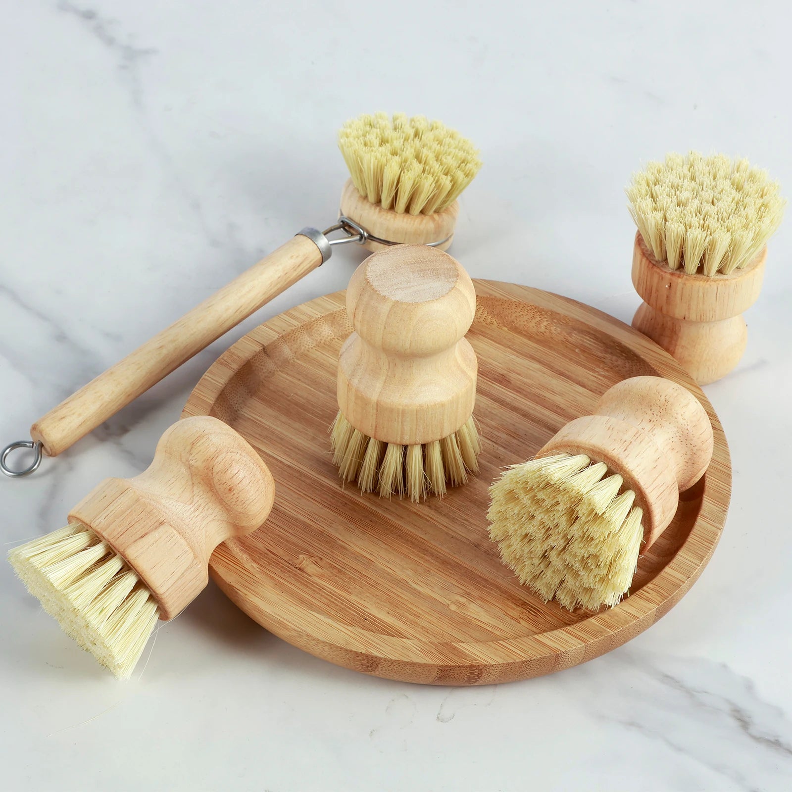 1 x Bamboo Cup Brush 1 x Long Handled Bamboo Sisal Brush 1 x Bamboo Sisal Cleaning Brush 1 x Bamboo and Coir Cleaning Brush