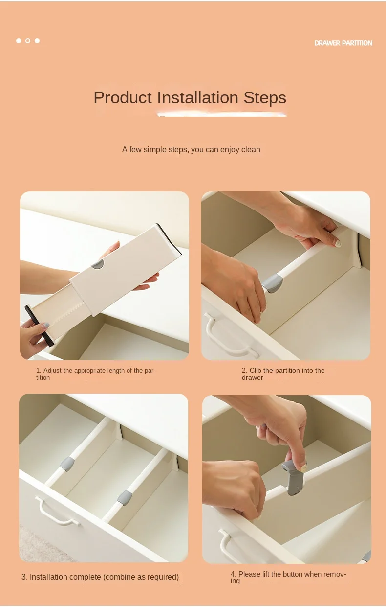 3923 Drawer Divider Adjustable Free Combination Drawer Storage Wardrobe Sock Divider Retractable Drawer Divider