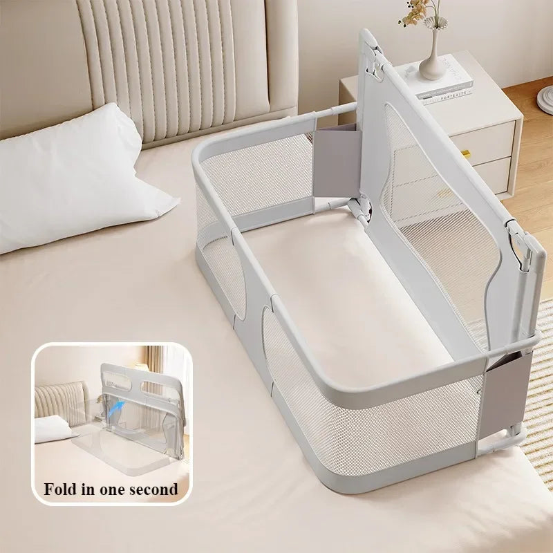 【Easy to Use】 With a seamless and convenient button design, our crib is quick and easy to assemble and operate. You can set it up in seconds and adjust it to the perfect height for your bed.