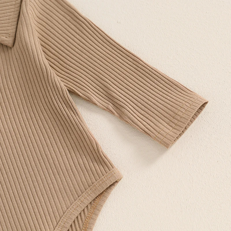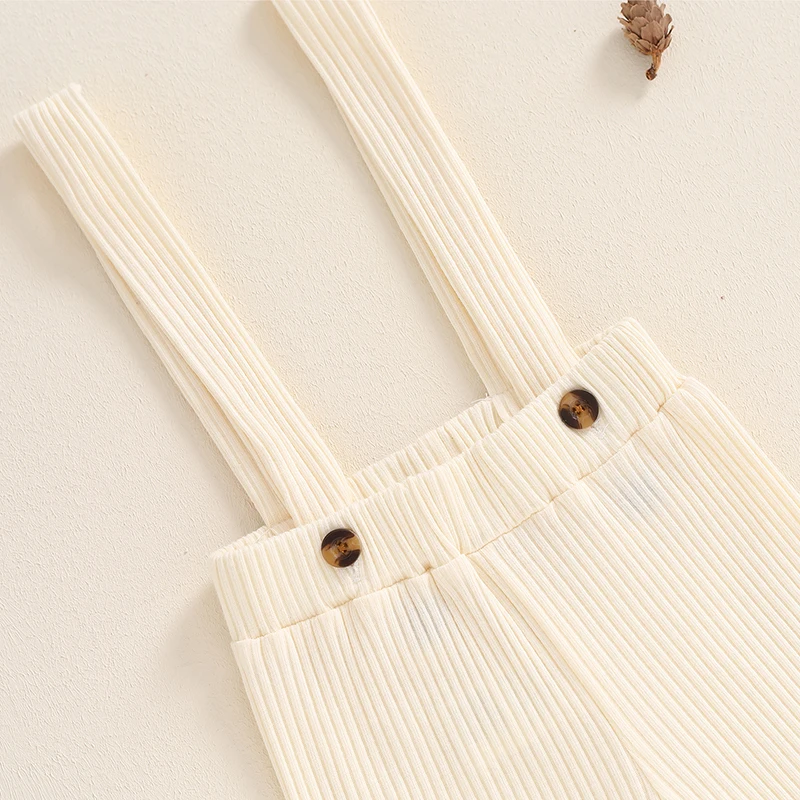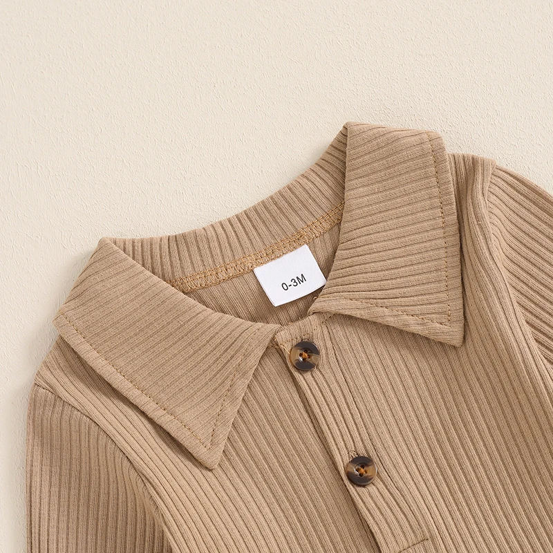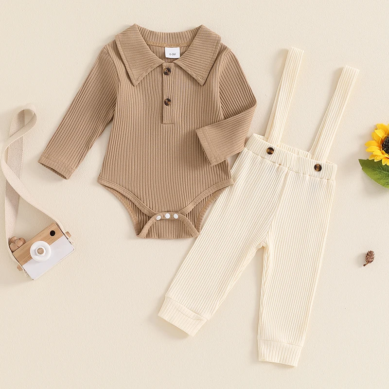 Baby Boys Fall Outfits Solid Color Turn-Down Collar Long Sleeve Rompers and Suspender Pants 2Pcs Clothes SetSize (cm)