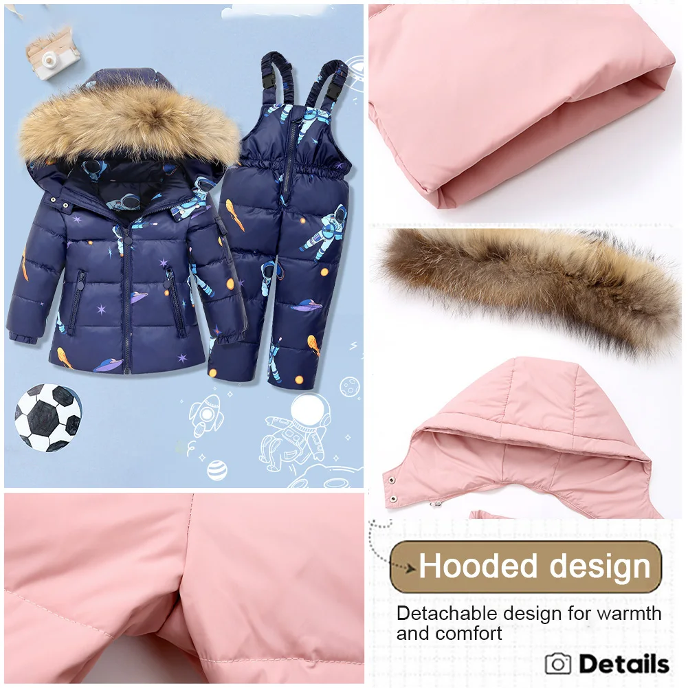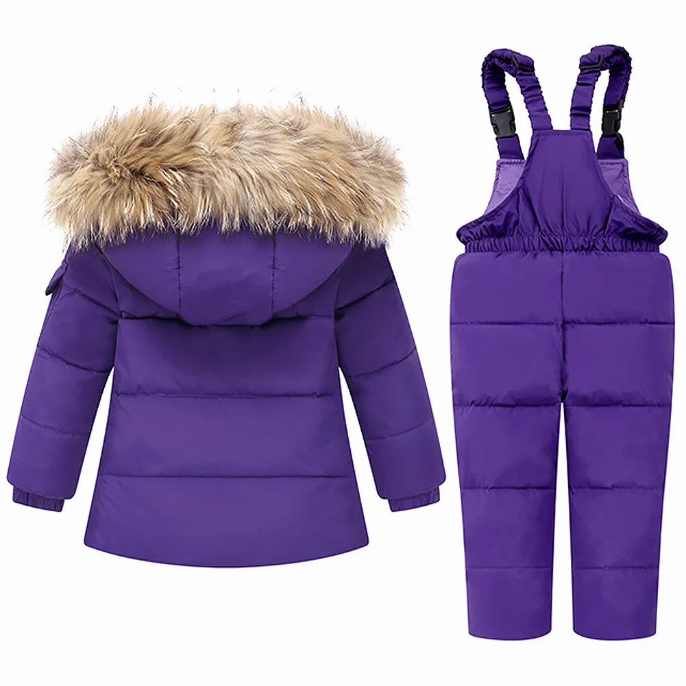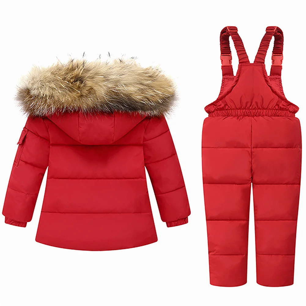 Baby Girls Snowsuit White Duck Down Jacket Toddler Boys Windproof Snow Wear Kids Hooded Coat + Warm Snowbib Pants
