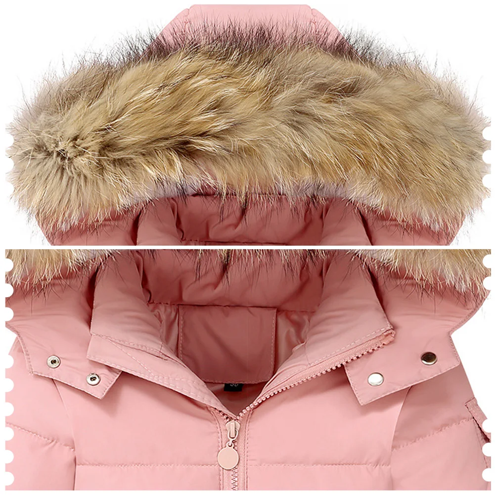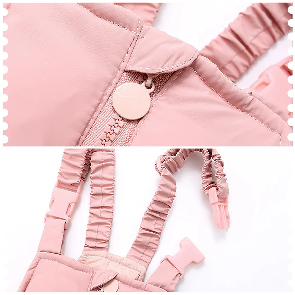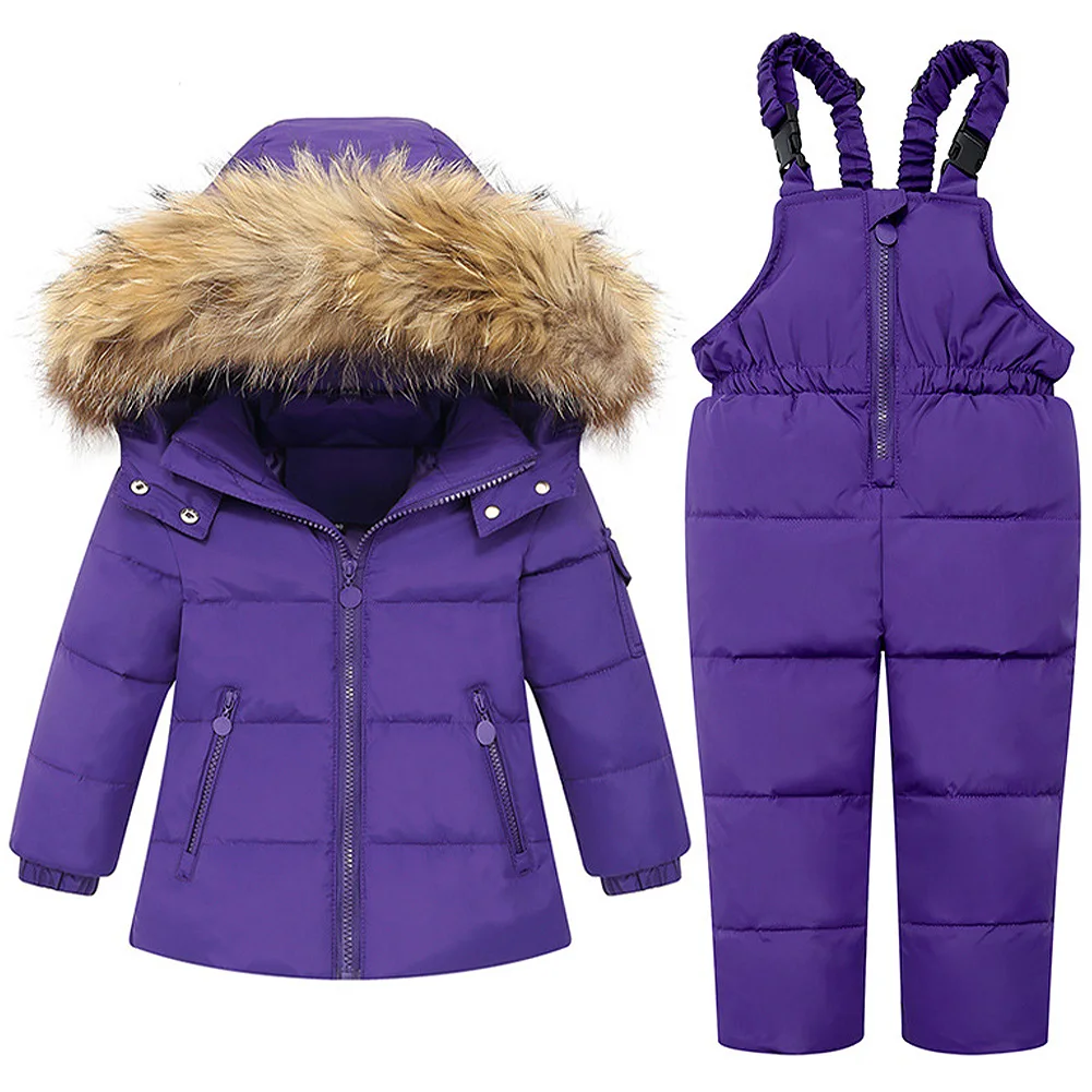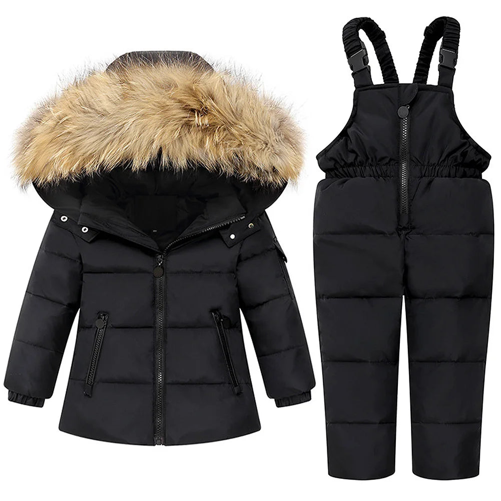 Baby Girls Snowsuit White Duck Down Jacket Toddler Boys Windproof Snow Wear Kids Hooded Coat + Warm Snowbib Pants