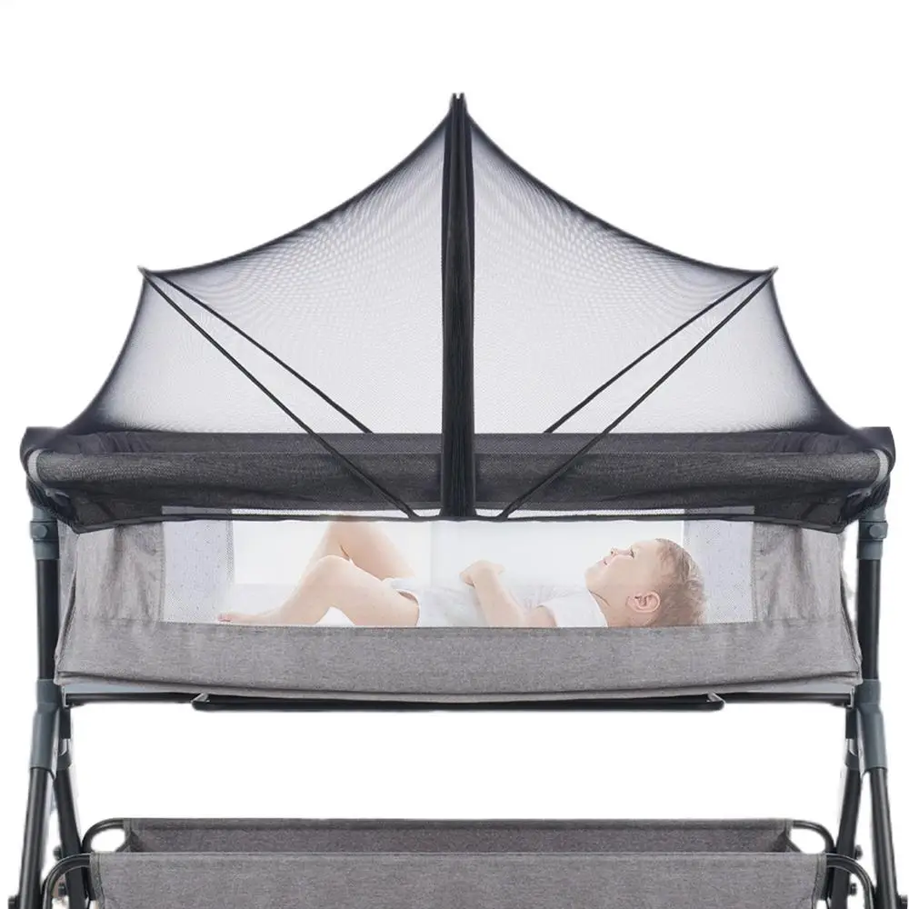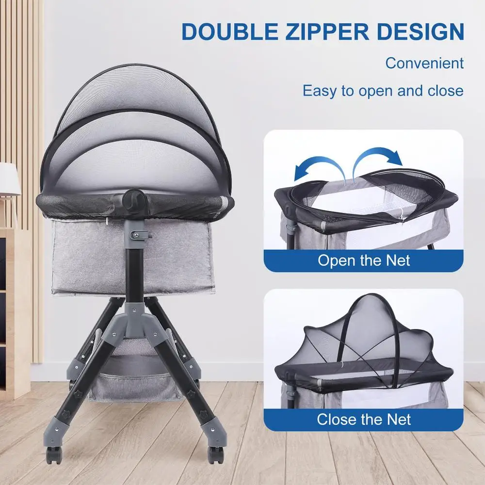 Enhance your baby's comfort with this lightweight and foldable bassinet cover Its breathable mesh construction ensures proper ventilation while its adaptable design suits various uses including strollers playards cradles toddler hammocks and bedside sleepers Portable and practical it is perfect for travel camping outdoor naps and small living areas offering gentle rocking movement when needed