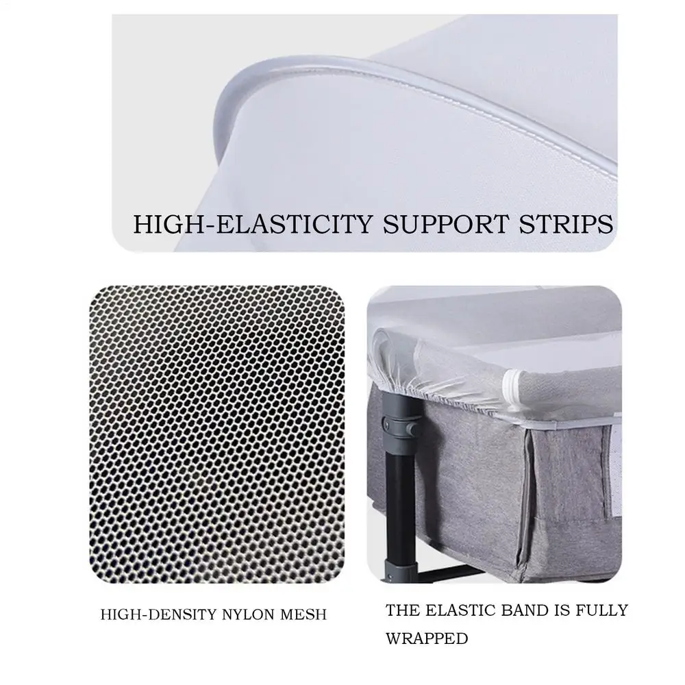2.Soft Skin-Friendly Fabric: Provides excellent ventilation to keep the crib cool at hot days using a gentle yet effective mesh structure that ensures comfort without causing skin discomfort or overheating issues