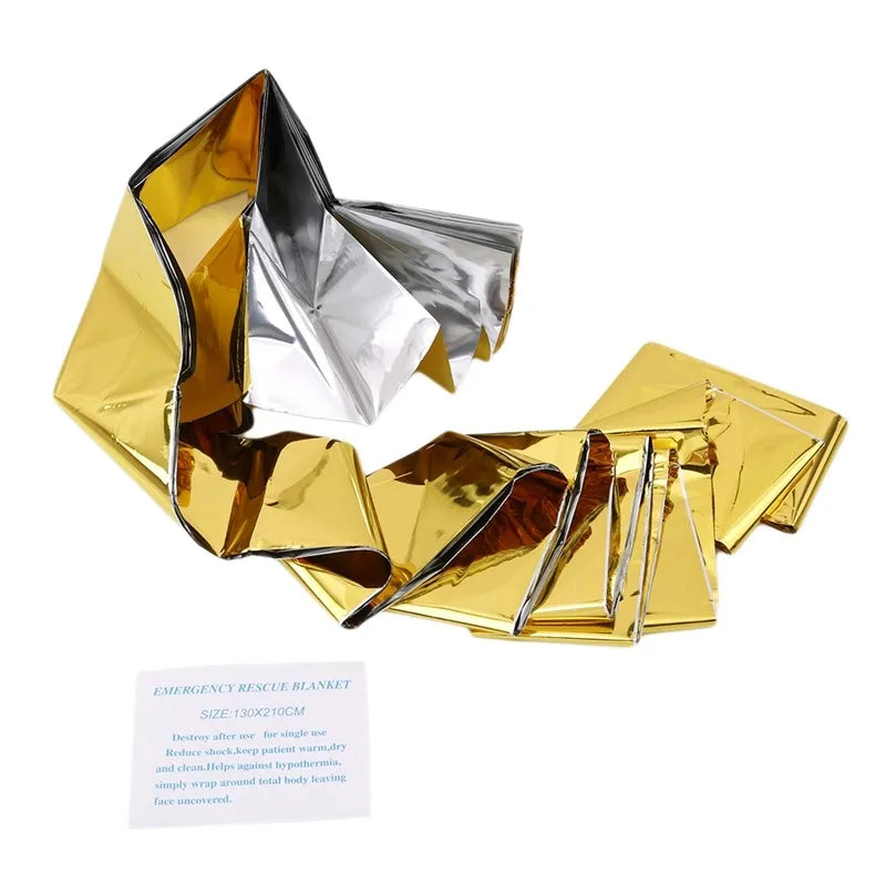 Emergency Blanket Outdoor Survive First Aid Rescue Kit Windproof Waterproof Foil Thermal Blanket for Camping Hiking