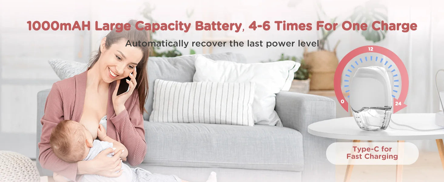 Our breast pump with a unique negative pressure chamber design to prevent backflow and leakage. The detachable milk storage bottles make cleaning and installation a breeze. With a 1000mAh battery, enjoy 4-6 pumping sessions per charge. We offer additional accessories to meet your needs. Experience convenience and efficiency with our breast pump today!