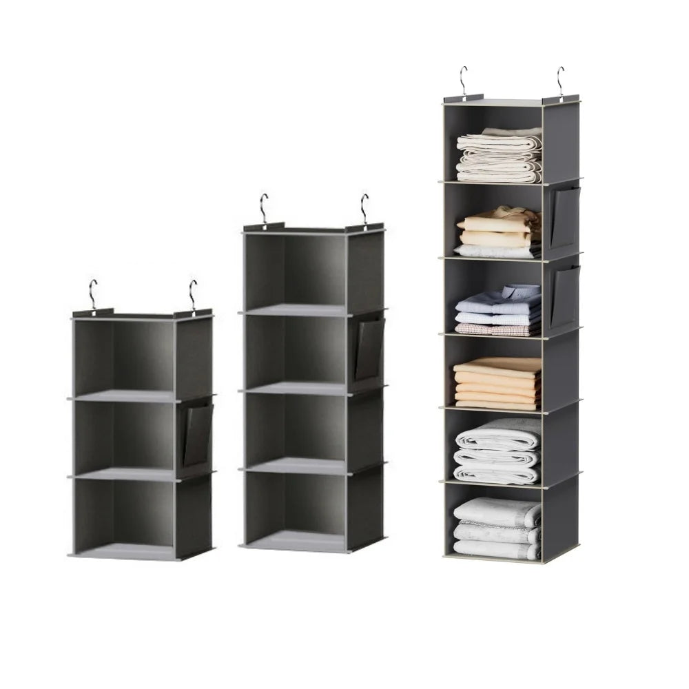 SUITABLE: The closet hanging storage allows you to have more space in your closet. It has six shelves units. This shelf organizer is suit for people who need more storage, but they do not have space in their closet. Also, it is for people who want to use their space more efficiently.