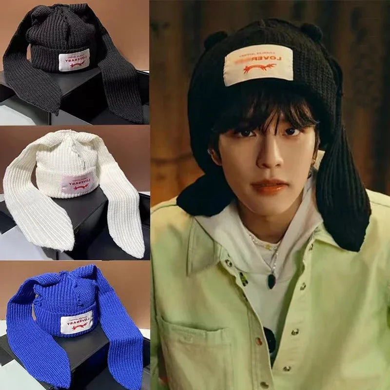style: y2k beanies,bunny ear cap,Crochet Knitted Hat,Long ears fox Hat,Hip-hop Cap,christmas Gift,Costume Beanie Hats,loverboy beanie,japanese y2k,loverboy hat,loveboy hat,beanie y2k,Winter hat