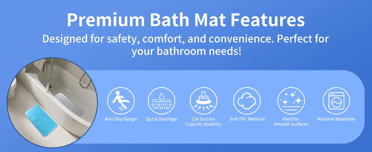MATERIAL: Non slip bathtub mat is made of high quality PVC material, suitable for different places, bathtub, inner shower, home, hotel and more.