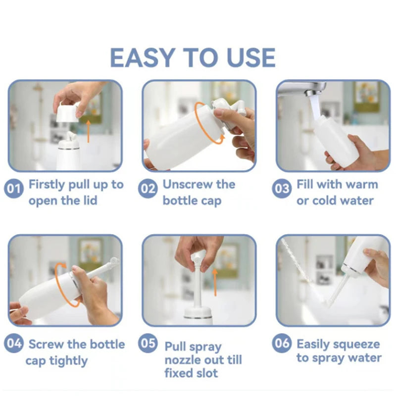 3.Comfortable Cleaning-The special construction of our washing bottle makes using our butt shower a breeze, as it is very easy to squeeze compared to traditional.Just hold a light pressure on the button is enough to get your bottom nice and clean.