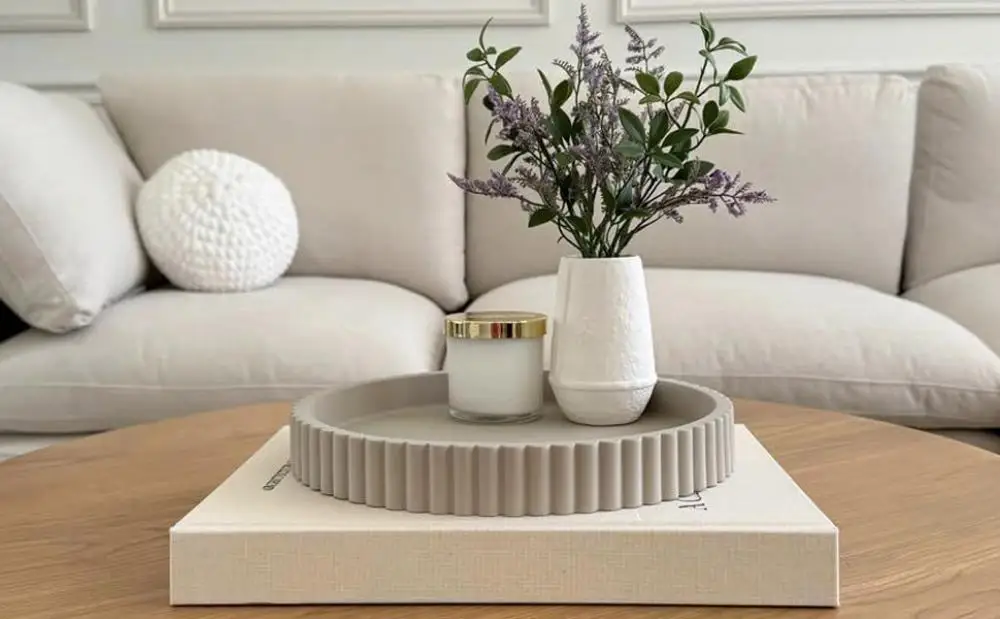 The minimalist design of this round tray adds a touch of elegance to any coffee table or centerpiece.