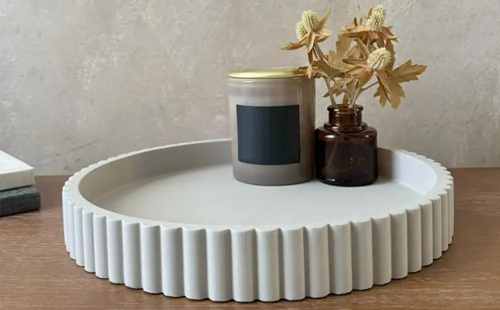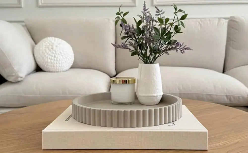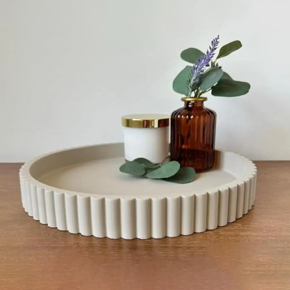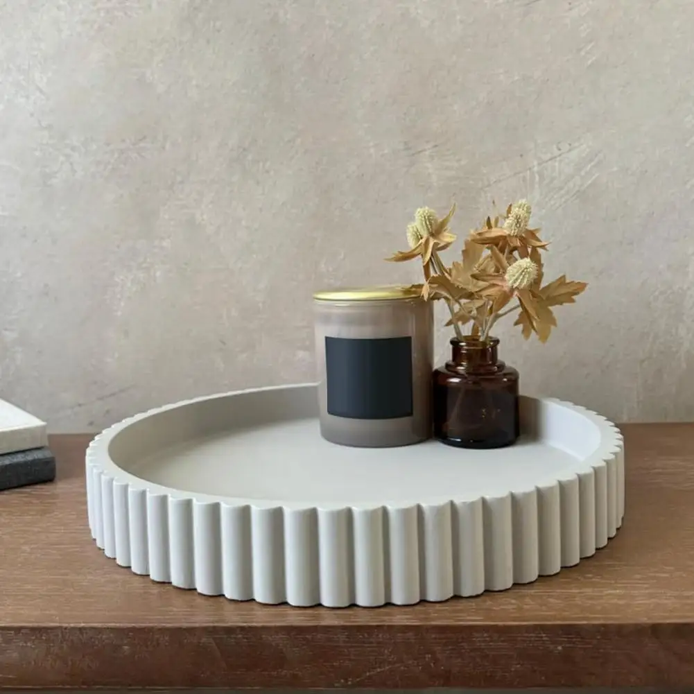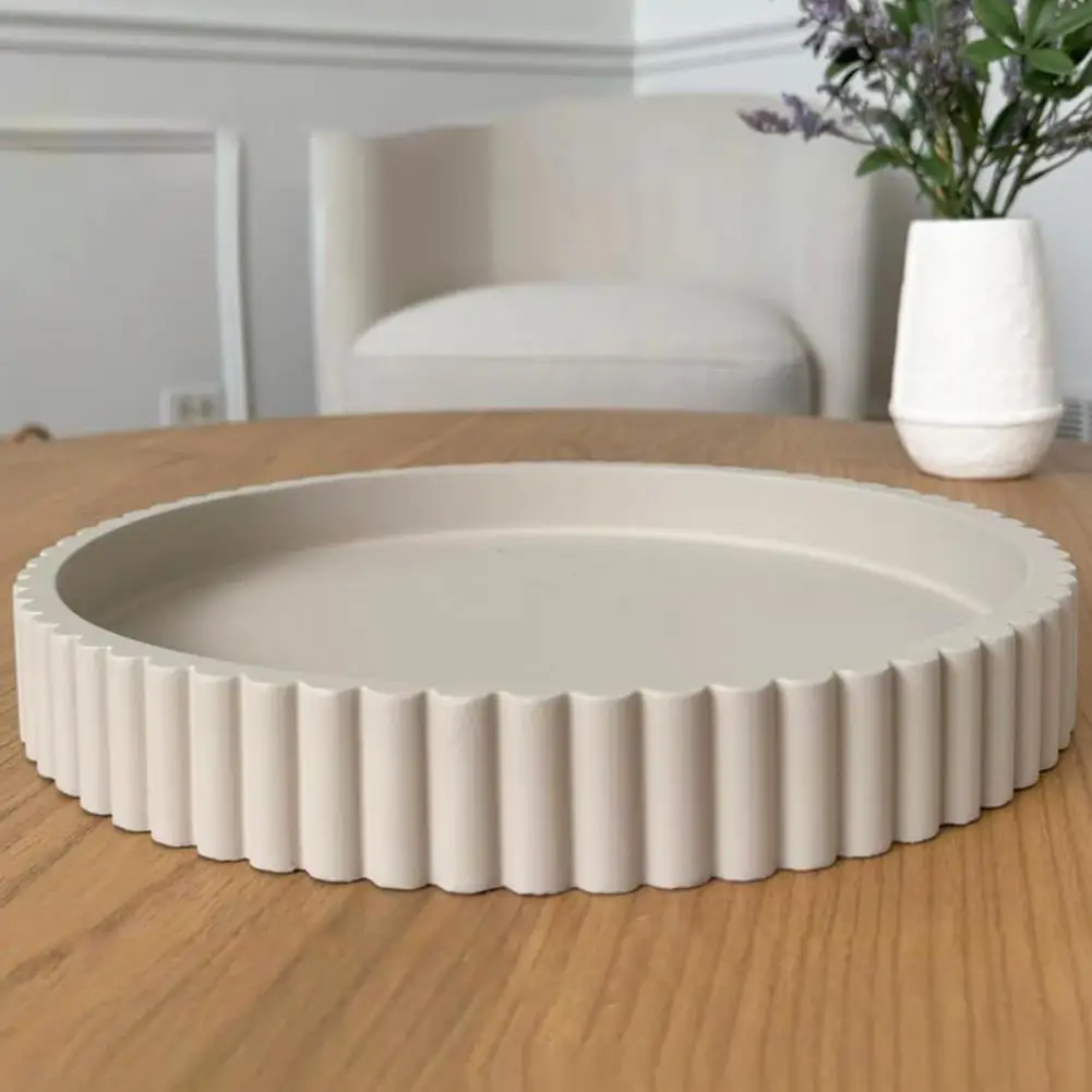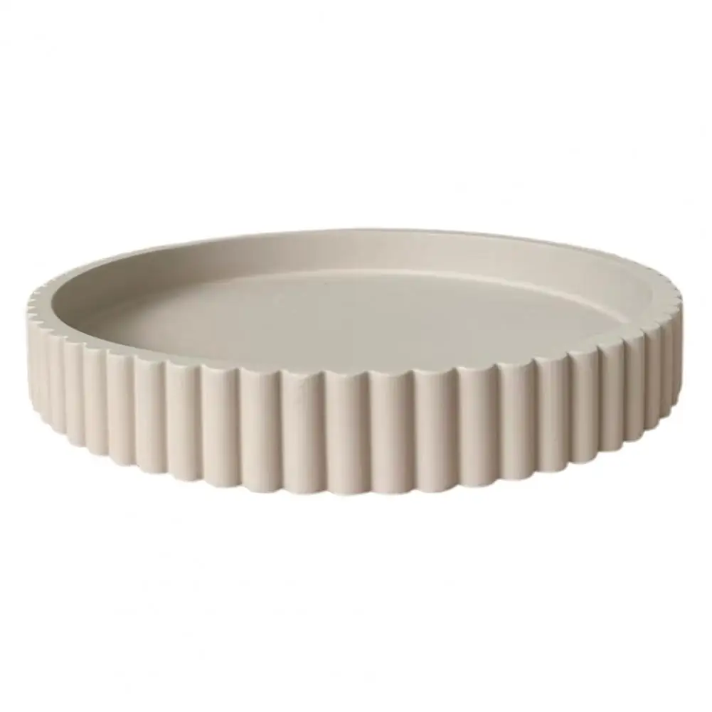 This fluted round tray serves as both a decorative and functional piece, ideal for serving or displaying items. Its timeless design blends effortlessly with minimalist decor, making it a versatile addition to your living space. Measuring 28cm in diameter, this tray offers ample space for various items and knickknacks, making it a practical and stylish centerpiece for your tea or coffee table. Elevate your home aesthetic with our chic and versatile tray today.