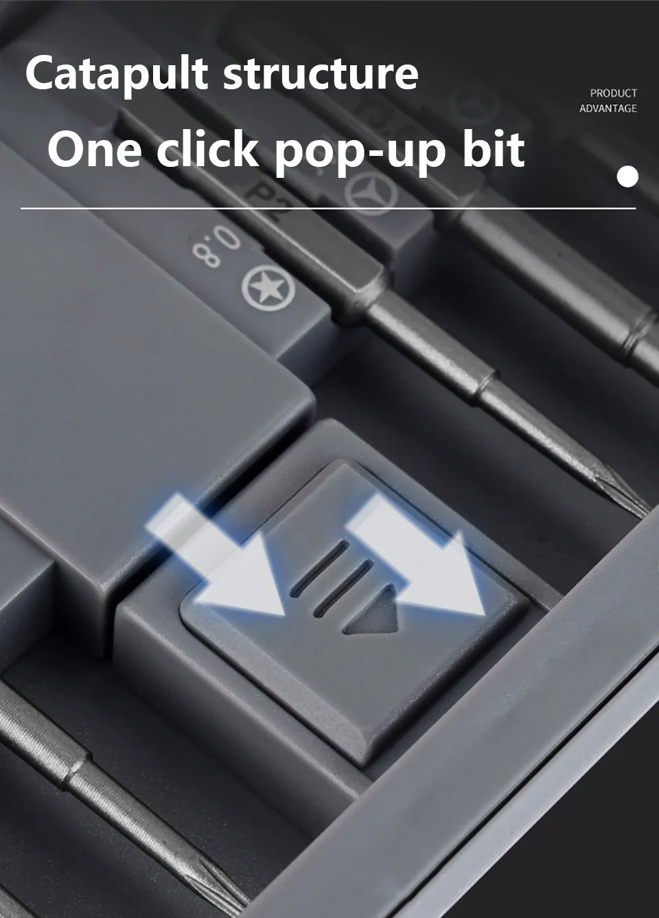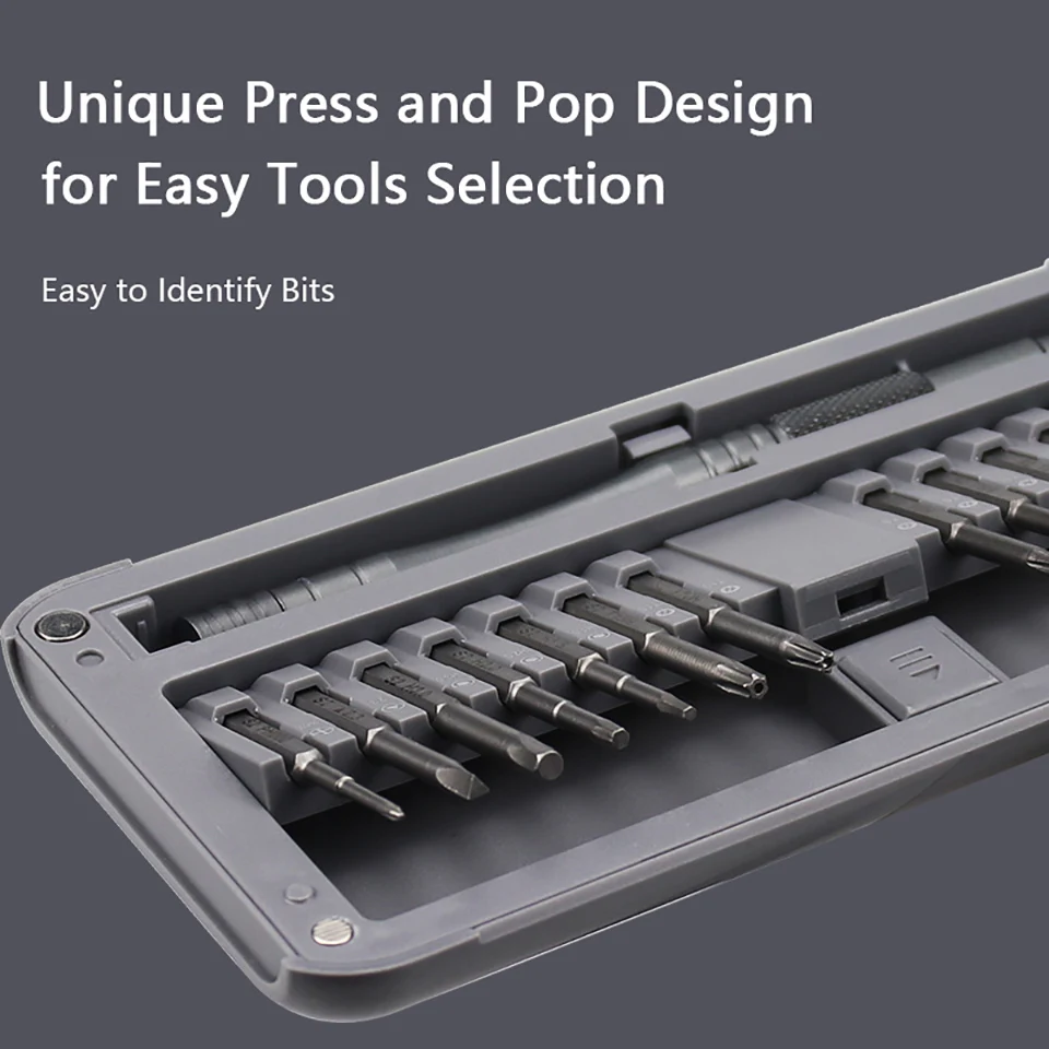 Each bit is molded into the plastic storage slot with magnetic secured base and it easy to identify bit you need with our unique press-and-pop design.