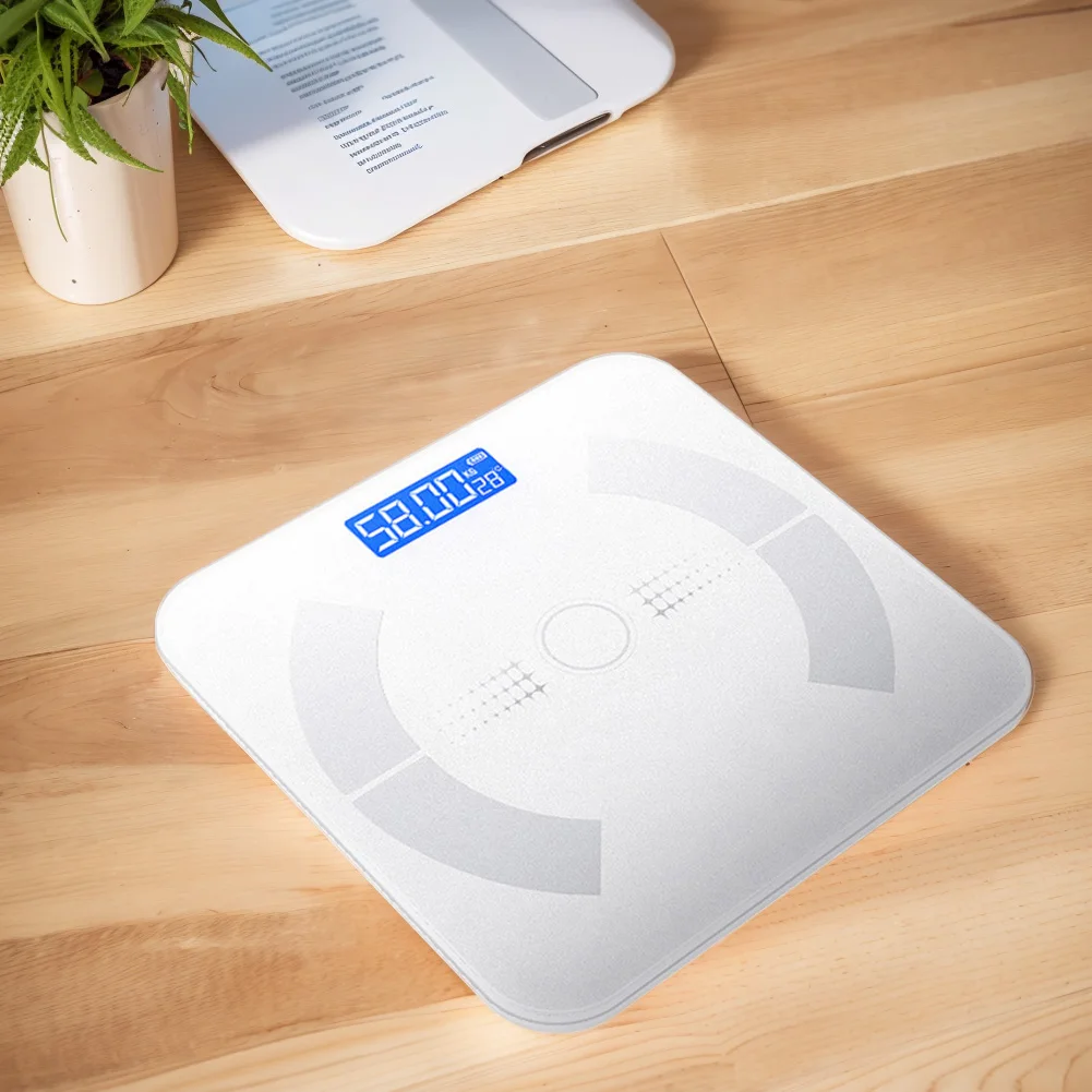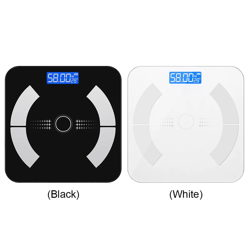 Features: Specification: Origin: Mainland China Scale frame material: ABS plastic base Panel material: explosion-proof tempered glass Color (optional): Black/white Display size: 58x23mm Display method: LCD high-definition blue screen display Supply method: USB charging (built-in 800 mAh lithium battery) Battery life: 6-8 months Weighing range: 0.2-180kg Display unit: kg/lb/st conversion Sensor: highly sensitive sensor Included functions: temperature, battery display, Bluetooth-Compatible function Product size: 260.00x260.00x22.00mm/10.24x10.24x0.91inch Gross weight: 900g