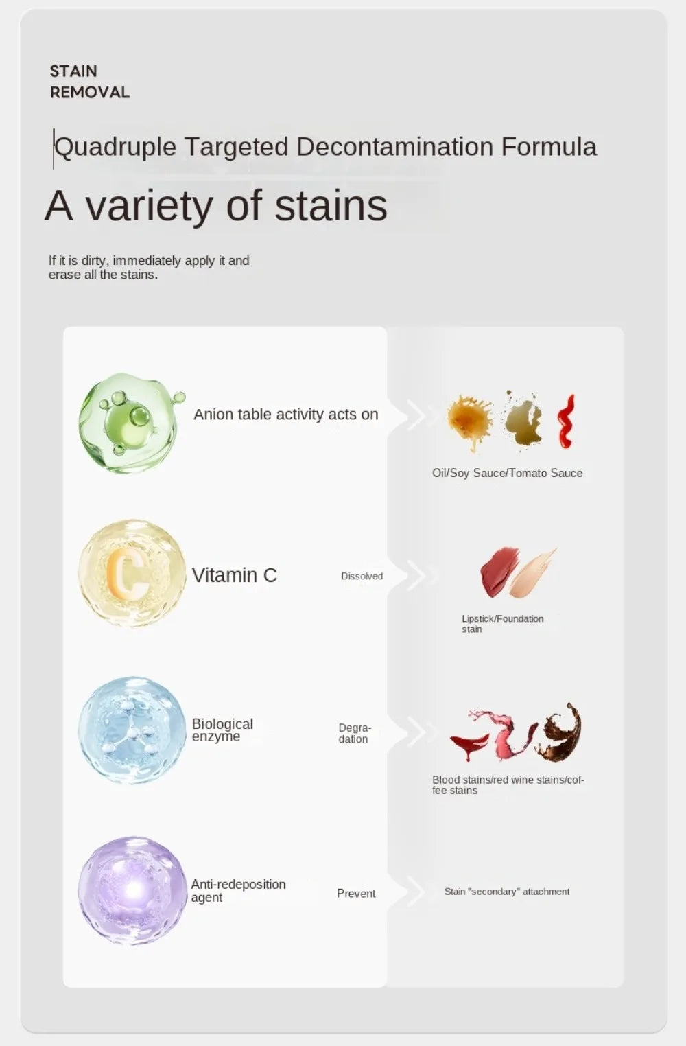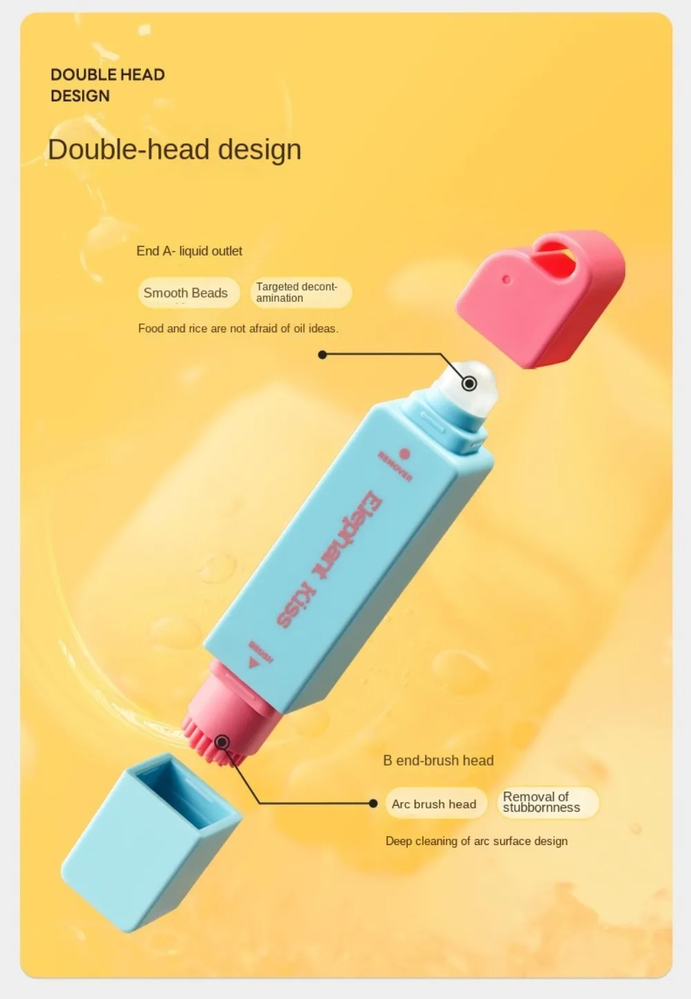 - Dual-Head Design: This 12ml stain removal pen features a convenient dual-head design, with one end equipped with a brush head for scrubbing and the other with a precision tip for targeted application.