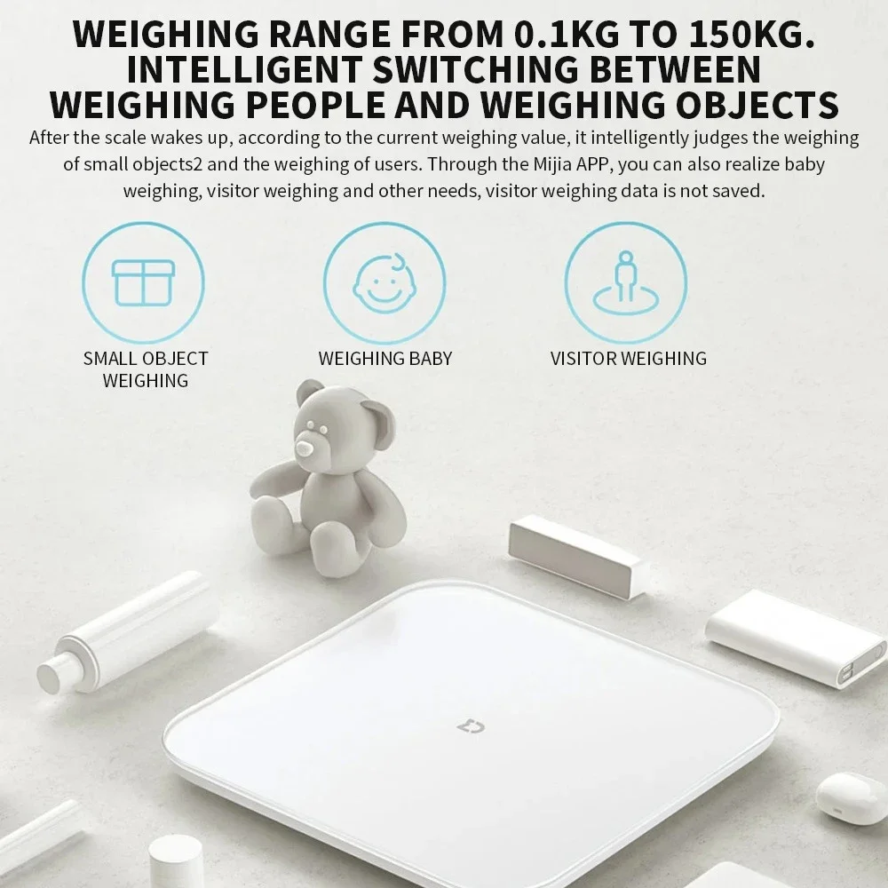 WEIGHING RANGE FROM O.1KG TO 150KG.INTELLIGENT SWITCHING BETWEEN WEIGHING PEOPLE AND WEIGHING OBJECTS